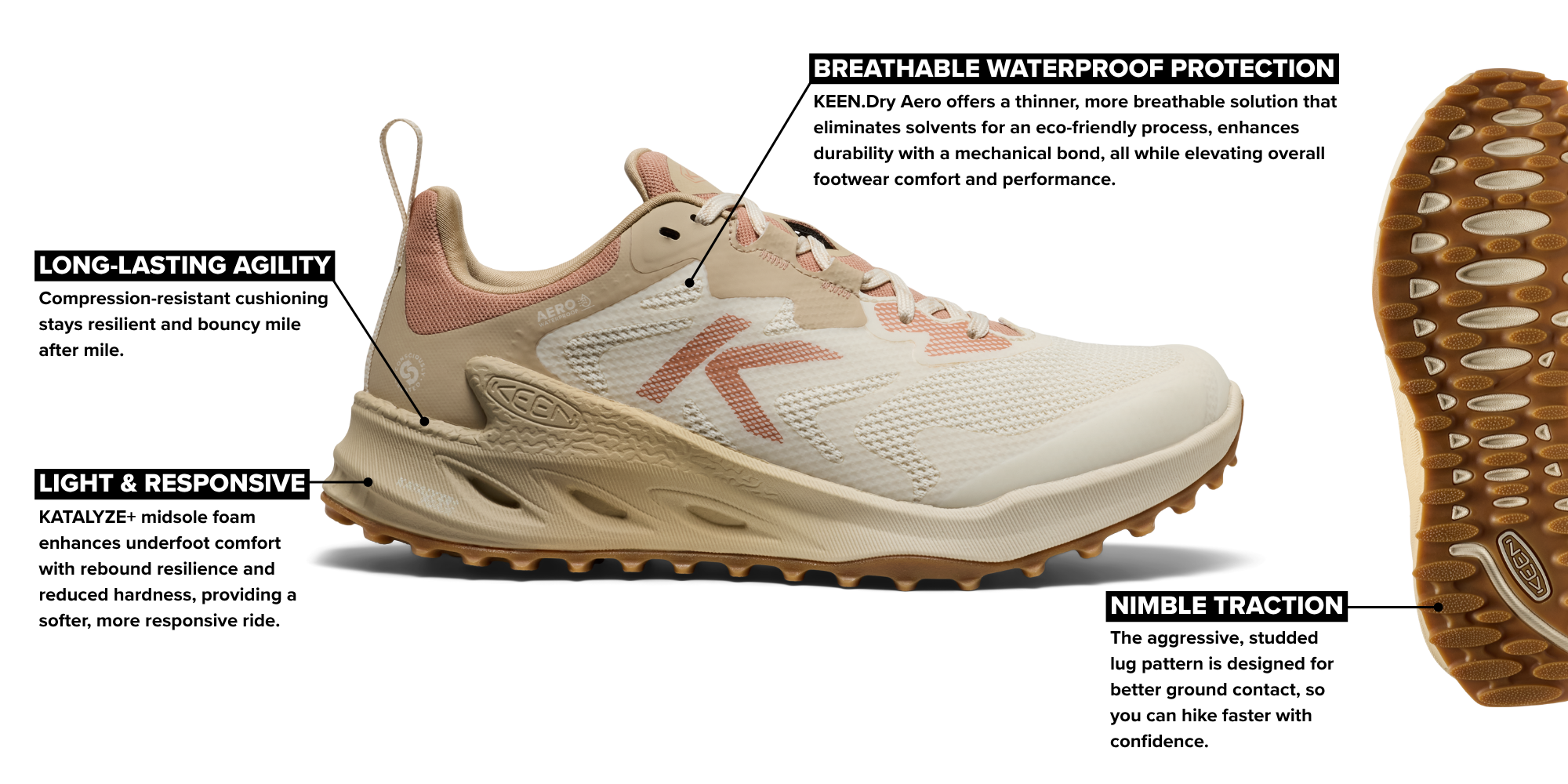 Born from a trail runner and built as a fast hiking shoe, the original ZIONIC was created after the pandemic, when KEEN noticed more folks hiking in athletic sneakers that were not well-equipped for the trail. On a mission to serve these outside athletes, KEEN developed a capable hiker that was athletic, agile, and lightweight.