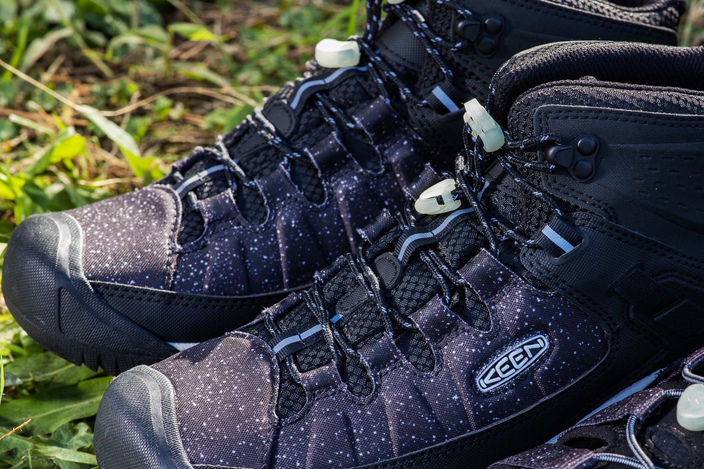 男裝 Targhee EXP Mid “SP” Waterproof 的鞋面幻化為滿天星斗的黑夜,又以鞋舌及繩索的銀色反光元素作點綴,亮眼奪目。