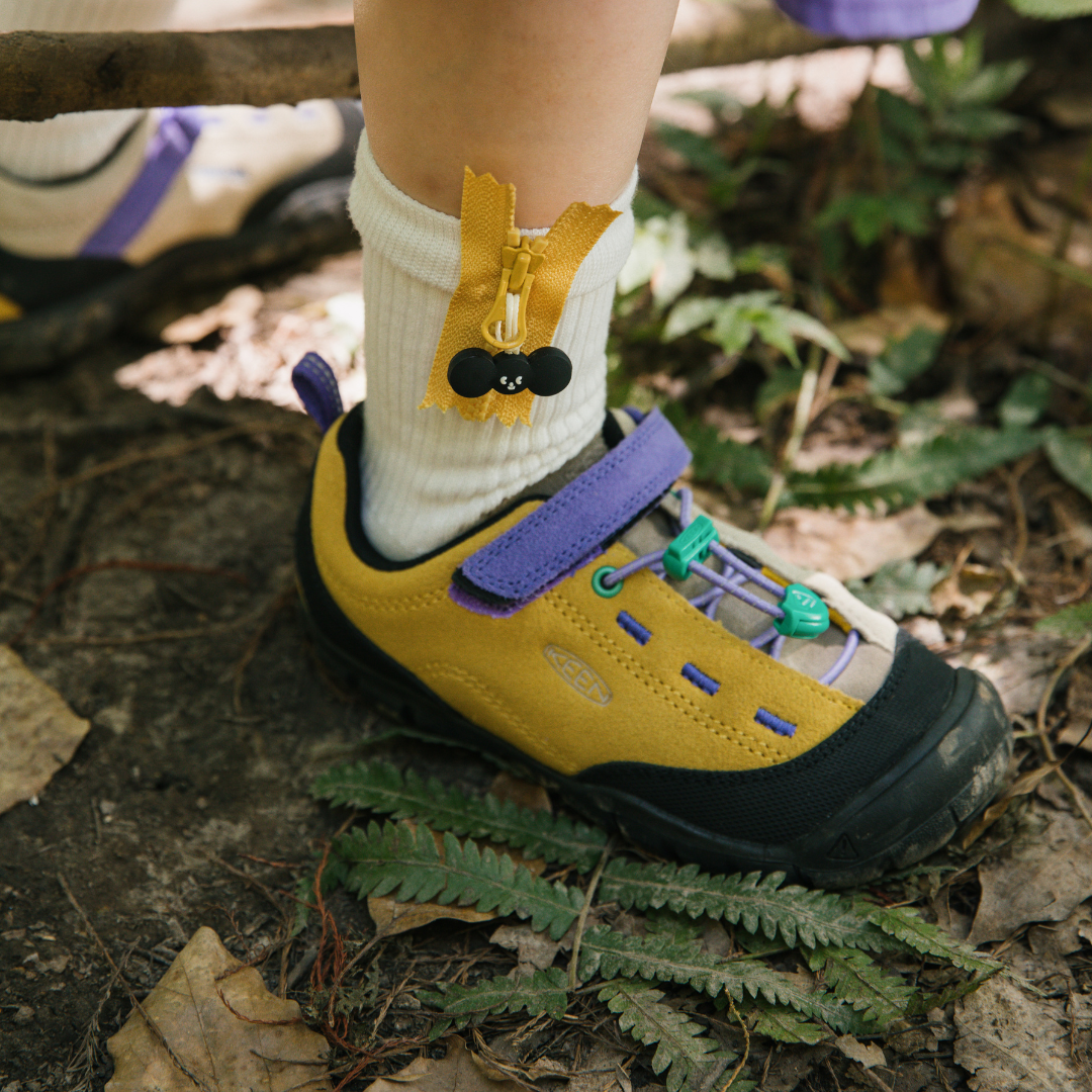 KEEN 與上海創意服飾品牌 TYAKASHA 聯乘推出一款充滿趣味且注重功能的聯名系列,設計靈感來自 TYAKASHA 奇幻的插畫世界及其備受喜愛的角色 Oring,以「Joy Knows No Age」為主題,大膽的紫拼黃色傳遞著活力、好奇心和探索的自由,鼓勵各個年齡層的人擁抱每一個激動人心的時刻。
