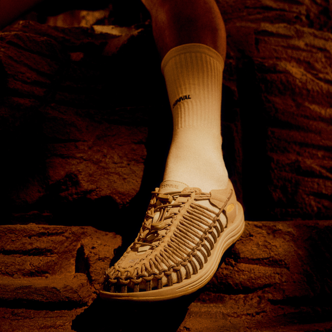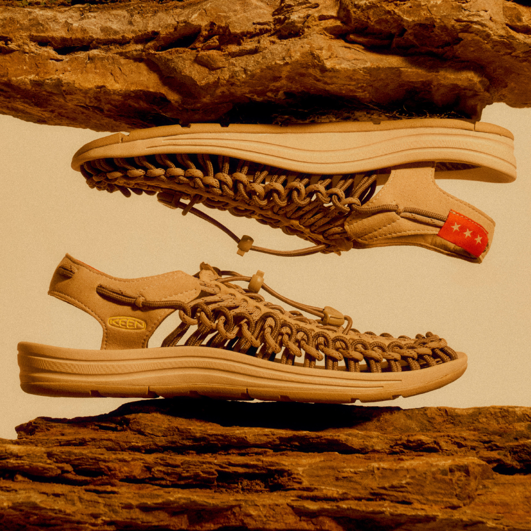 CARNIVAL 是一家泰國曼谷的時尚生活品牌及售賣街頭服飾和獨家運動鞋的知名零售店。CARNIVAL 攜手 KEEN 以「Nature-Bound」聯名系列呈現 KEEN 其中一款標誌性涼鞋 UNEEK。其設計靈感來自清邁帕楚峽谷(Pha Chor)不為人知的天然雕塑。這座隱密的天然傑作,經歷數個世紀的地殼移動和風吹雨打所塑造而成,峽谷的岩石形成層疊漸變的色澤,並將其天然色彩融入鞋款當中,這次合作代表住人類創造力跟大自然美景之間的完美結合。