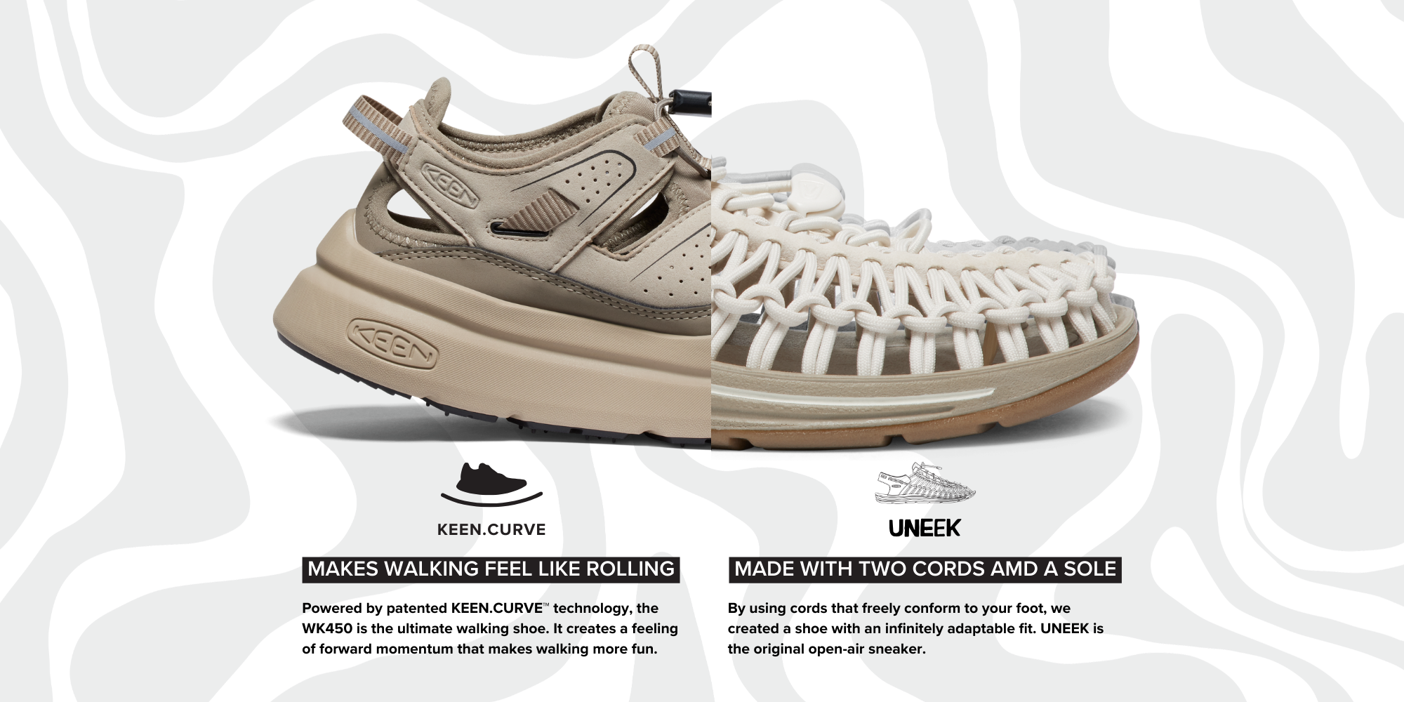 以兩條鞋繩加一個鞋底為設計理念,打破傳統製鞋框架的 UNEEK,自誕生之後在涼鞋風潮上不斷求新求變,打造出一對又一對時尚與功能完美結合的涼鞋,KEEN 今年再為 UNEEK 家族增添新成員帶來全新成員 — UNEEK WK。以 UNEEK 獨有由鞋繩編織而成的鞋面,配上近年品牌主推的 KEEN.CURVE 專利技術特製而成的弧形鞋底,在步行時能提供額外的推動力,令你在步行可以更輕鬆之餘,同時體驗有趣的 ROLLING 感覺。時尚、功能同時兼備的 UNEEK WK,絕對會成為時尚界別的新寵兒!