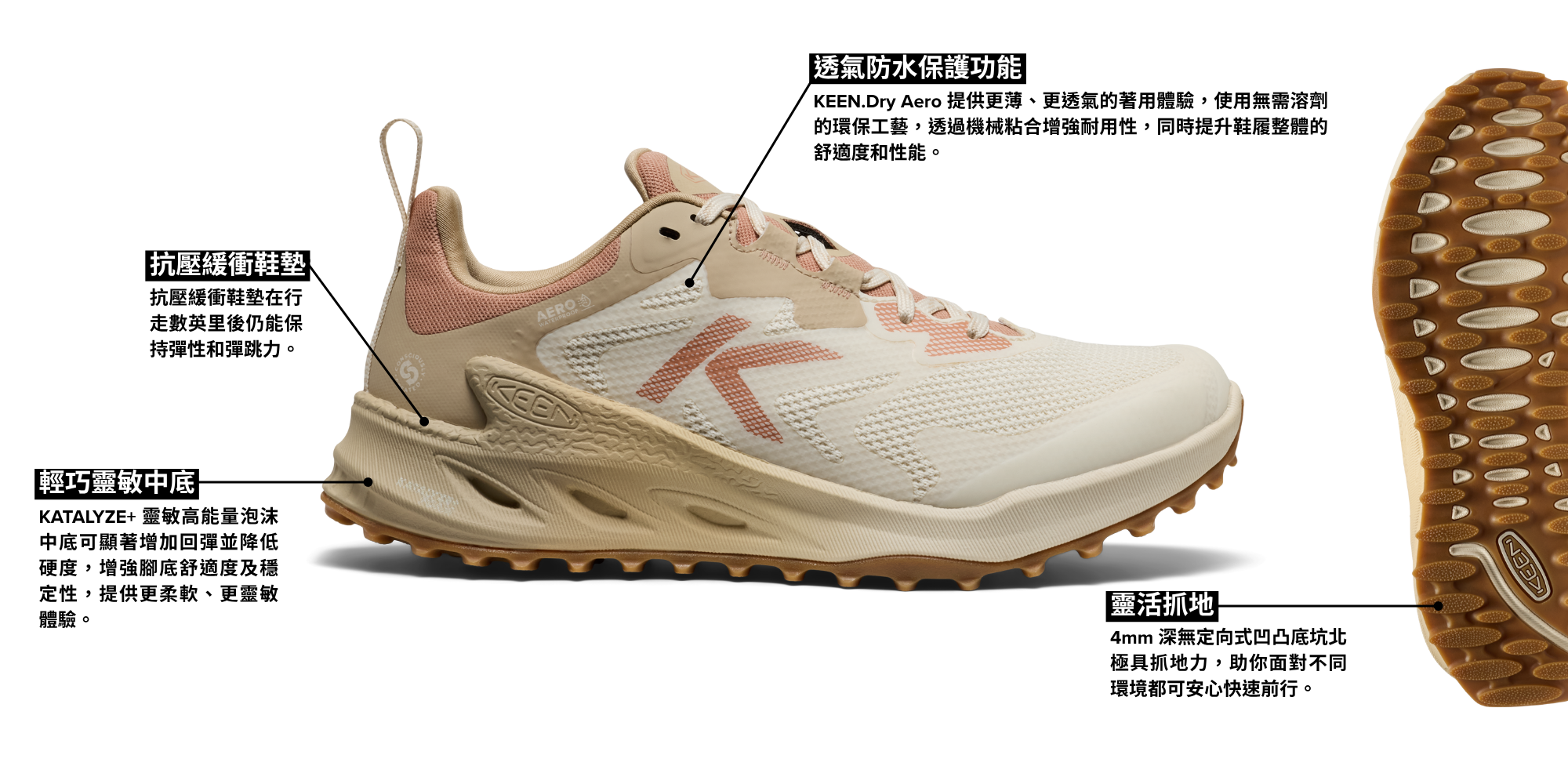 靈感來自越野跑步鞋,最初的 ZIONIC 鞋款誕生於疫情結束後,當時 KEEN 注意到越來越多人穿著運動鞋去登山。為了讓這些戶外運動愛好者得到更好的登山體驗,KEEN 開發了一款兼具運動用途、靈活性和輕盈的登山鞋。