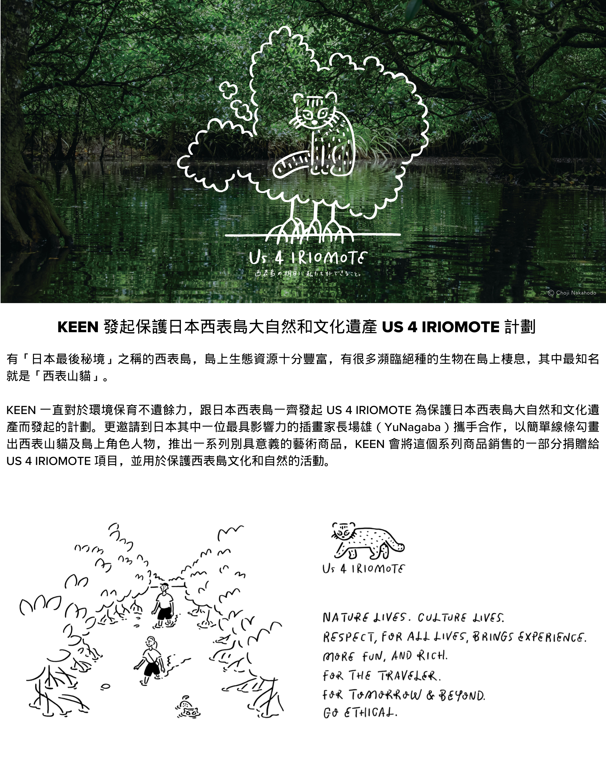 有「日本最後的秘境」之稱的西表島,島上生態資源十分豐富,有許多瀕臨絕種的生物棲息在這裡,其中最知名的便是「西表山貓」。一直對於環境保育不遺餘力的 KEEN,與日本西表島一同發起 US4 IRIOMOTE 大型保育計劃,以島上特有的「西表山貓」為代表,並推出印有西表山貓圖案的 US4 OC/RP FAMILY CAT TEE。
